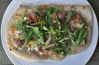 I'll admit, I cheat when it comes to pizza dough. I usually buy the dough from Trader Joe's. Or sometimes I pick up some frozen dough at a local grocer from a nearby Italian restaurant. But if you have your own pizza dough recipe, by all means use it here.4. Brush dough with olive oil and lightly layer with mozzarella and goat cheese. A little goes a long way with this pizza. There's so much going on you don't need a ton of cheese. Add sausage along with onion and fennel mixture. Bake according to dough instructions, or until cheese is melted and dough looks done.